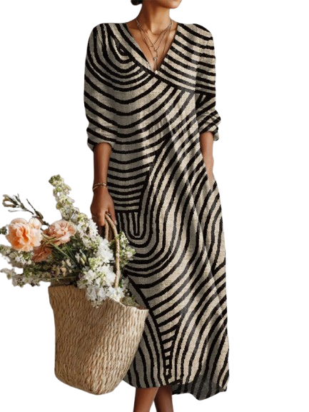 PRESLEE | Vintage Abstract Geometry Art Print Linen Pocket Dress